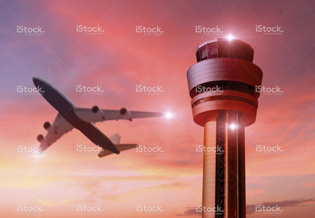 stock-photo-58583540-airplane-taking-off-with-control-tower-at-sunset