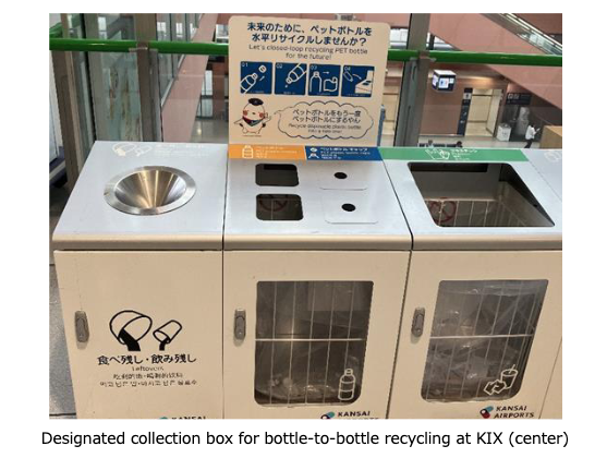 Kansai Airports Group has set the environmental plans: Environmental Vision 2050 and Environmental Targets 2030. One of the pillars in the plans is “circular economy”, key initiatives of which are to reduce the use of plastic, to shift away from plastic, and to work on bottle-to-bottle recycling. Dedicated collection boxes for the bottle-to-bottle recycling were placed at 6 locations in KIX in July 2023. This event aims to encourage as many customers as possible to learn about the bottle-to-bottle recycling and its sorting steps.