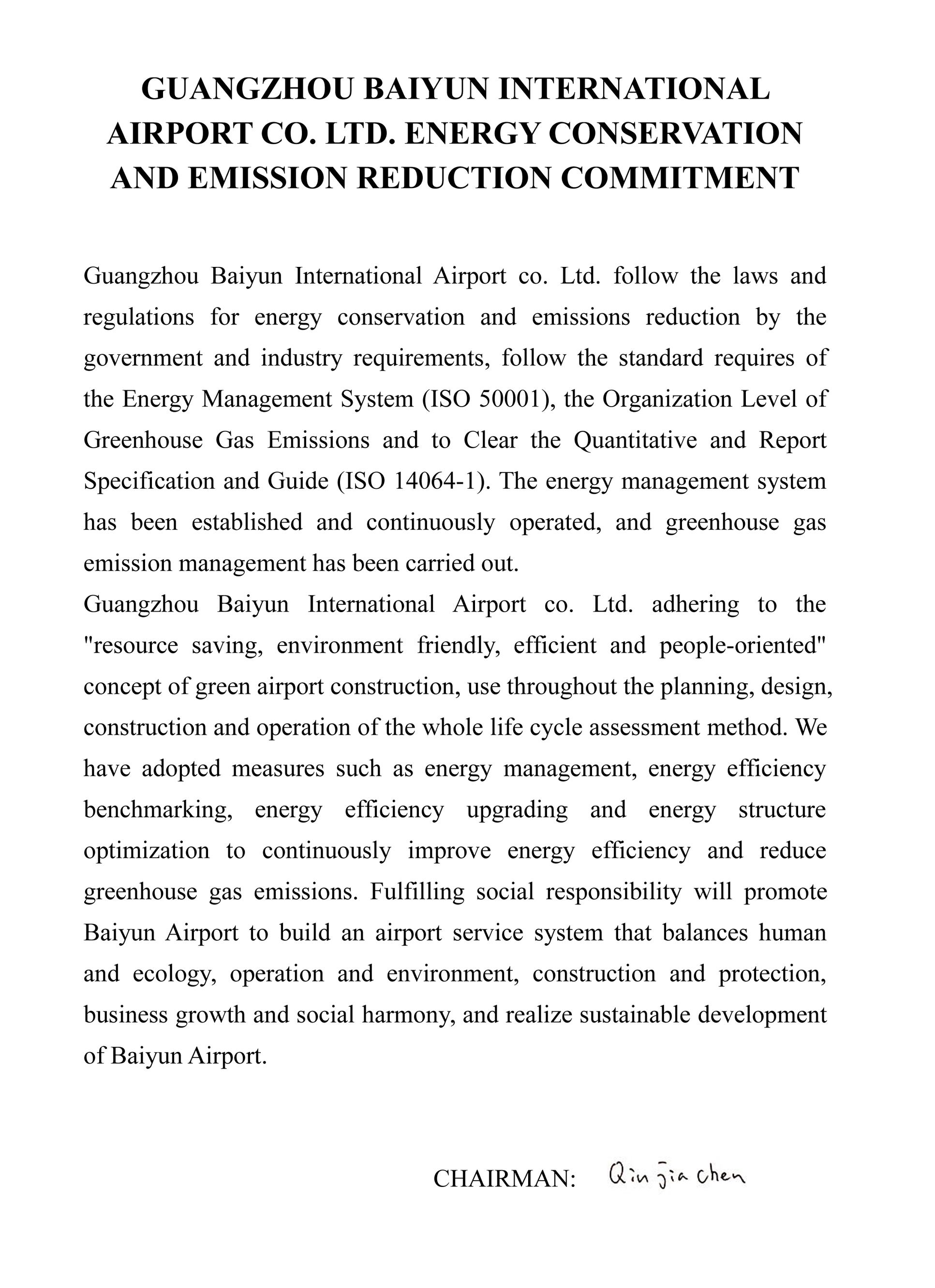 Guangzhou Baiyun International Airport Co. Ltd Energy Conservation & Emission Reduction Commitment
