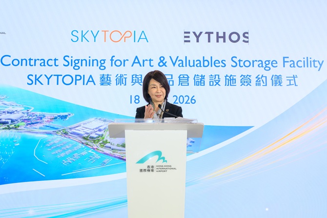 Vivian Cheung, Chief Executive Officer of AAHK, said, “The new premium Art and Valuables Storage Facility is a strategic component of SKYTOPIA’s Art Ecosystem, which will also include art appreciation and trading activities. Our objective is to support Hong Kong’s development as a leading global hub for art trading. The Art Ecosystem will generate strong synergies with SKYTOPIA’s other premium attractions, including the yacht bay, luxury hotels, business aviation centre as well as the art exhibition facilities at AsiaWorld-Expo, attracting global visitors, investors and cultural patrons to Hong Kong.”