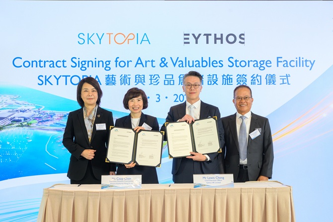 Airport Authority Hong Kong (AAHK) today signed the contract for operating the SKYTOPIA Art & Valuables Storage Facility with Eythos, a specialist custodian of art and high-value assets. It marks a significant milestone in Hong Kong International Airport’s (HKIA) development into an Airport City under the SKYTOPIA blueprint.