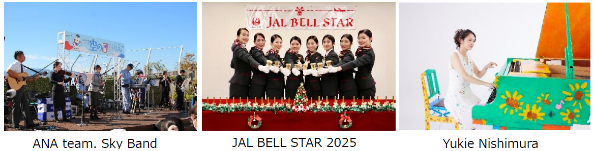 This year, we will hold a Christmas concert at ITAMI on 6 and 7 December 2025. The event is a unique event held in the airport’s open and spacious setting, bringing you closer to the joy of music and the excitement of travel. Performers include Yukie Nishimura, a pianist from Toyonaka City in Osaka Prefecture where ITAMI is located, ANA team. Sky Band, JAL BELL STAR2025, Toyonaka City Fire Band, musicians from the Osaka College of Music, and a variety of other musicians. The concert will feature a wide range music genres such as gospel and classical music and timeless standards. Audiences of all ages, from children to adults, can enjoy music performances in a relaxing atmosphere.
