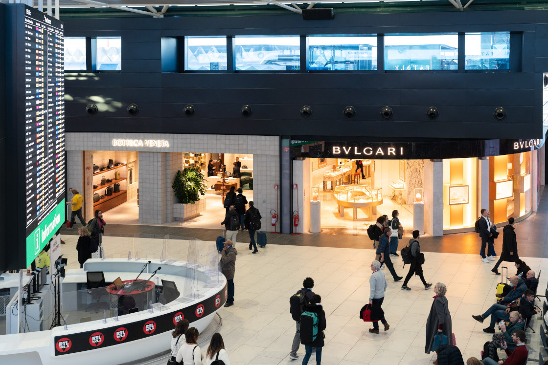 The new Boarding Area A at Fiumicino Leonardo da Vinci Airport welcomes 14 new high-end fashion brands: A total of 1,700 square metres devoted to fashion accessories, footwear and jewellery by Bulgari, Bottega Veneta, Gucci, Moncler, Dolce&Gabbana, Golden Goose, MaxMara Weekend, Vilebrequin, Pinko, Twin Set, Piquadro, The Bridge, Coccinelle and Furla.