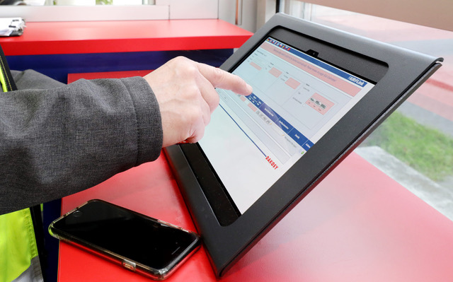Image 1: Digital Operating Interface of the Ramp Control System. Image 2: Ramp Control System in use at FCS.Image rights: Frankfurt Cargo Services