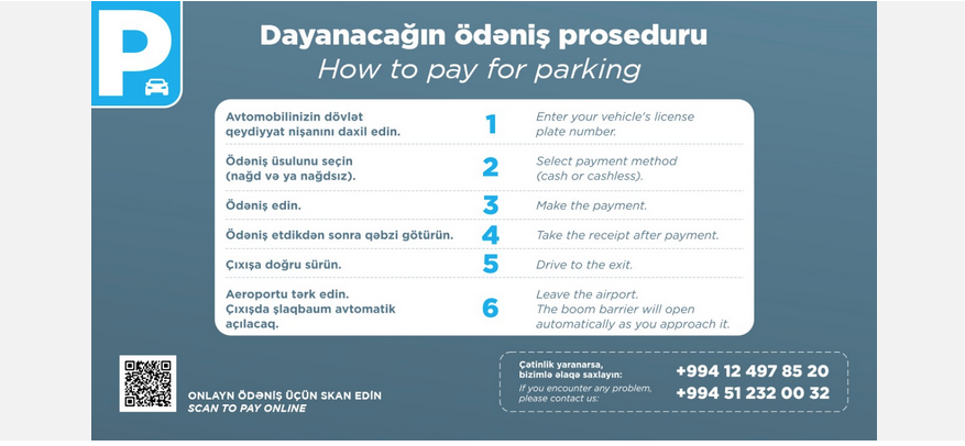 If any questions arise regarding the implementation of the new system at the initial stage, responsible employees will provide visitors with the necessary support, or additional information can be obtained by clicking on the link https://airport.az/az/transport/parking/.