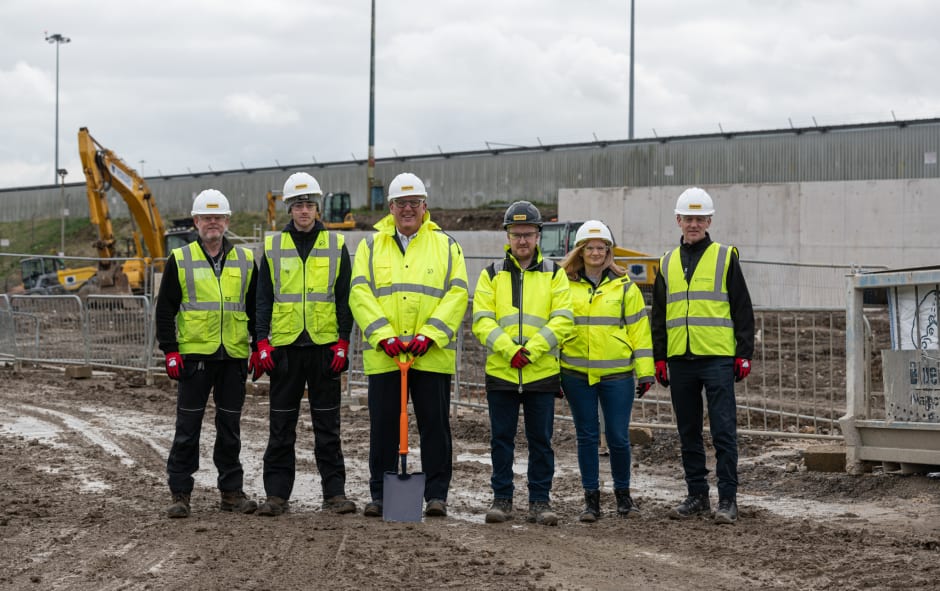 To celebrate ground breaking of the LBA:REGEN development, Leeds Bradford Airport CEO Vincent Hodder was joined by Darren McIvor, Project Manager for Farrans Construction, Charles Johnson, Head of Planning Development at LBA, and current LBA apprentices Helen Rhodes and Rio Master.
