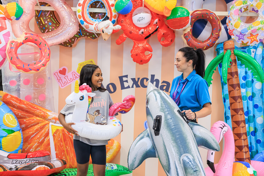 The ‘LLA Lilo Exchange’ is fully stocked with everything from lilos to rubber rings and inflatable dolphins or crocodiles, offering responsibly sourced options for both adults and children.