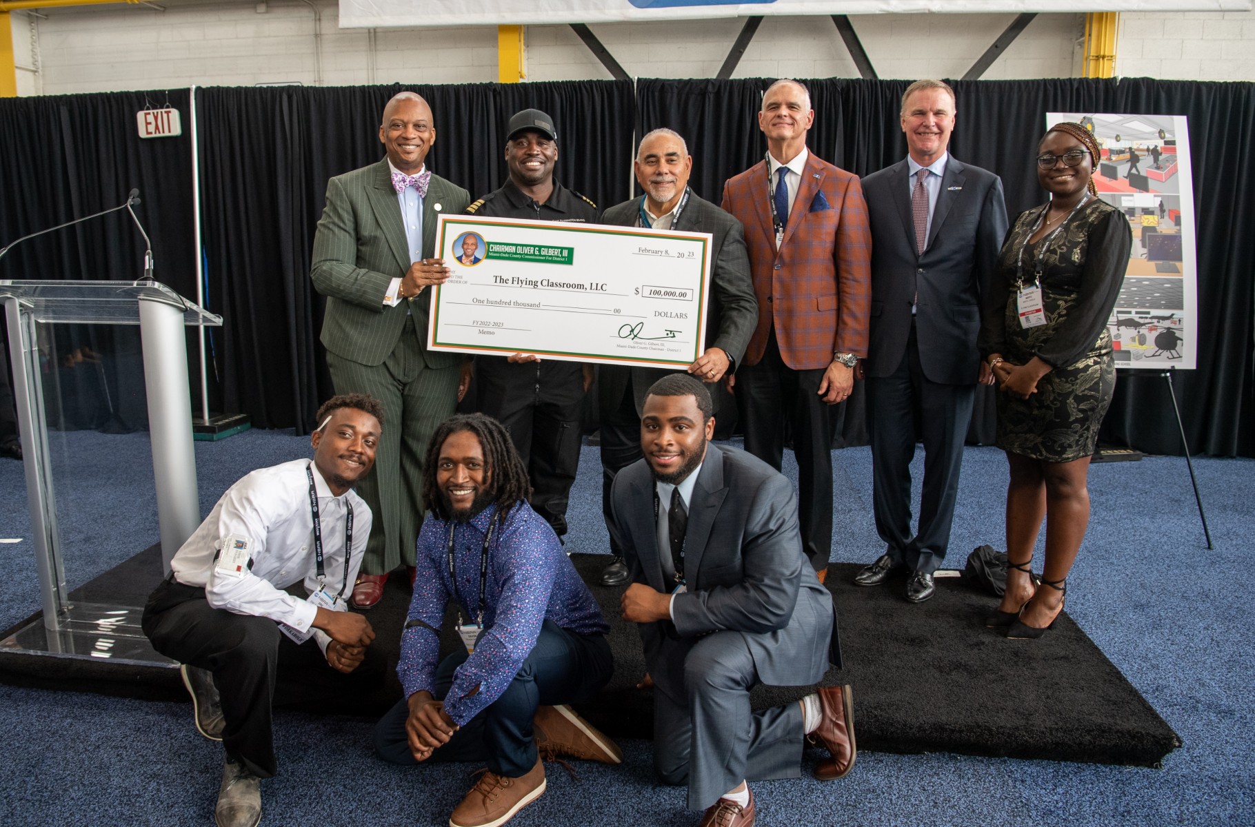 At the National Business Aviation Association’s (NBAA’s) 2023 Miami-Opa locka Regional Forum, Miami-Dade Board of County Commissioners Chairman Oliver G. Gilbert III presented a $100,000 check for the center to Capt. Barrington Irving, a Guinness World Record-breaking pilot who was both the youngest person and first black pilot to fly solo around the world.