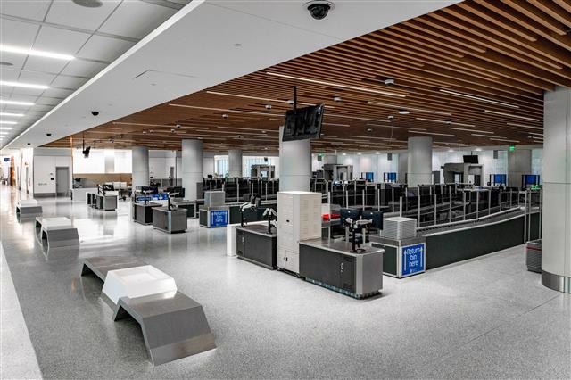 The new Terminal 2/3 headhouse was designed around a modern, comfortable and seamless travel experience. Guests are greeted by a 250-foot LED dynamic display behind ticket counters. In partnership with the Transportation Security Administration (TSA), qualifying customers on Delta Air Lines can check bags completely hands-free through the use of their digital identity. An expanded security checkpoint that will feature 14 lanes will allow passengers to move more quickly and smoothly through the screening process.
