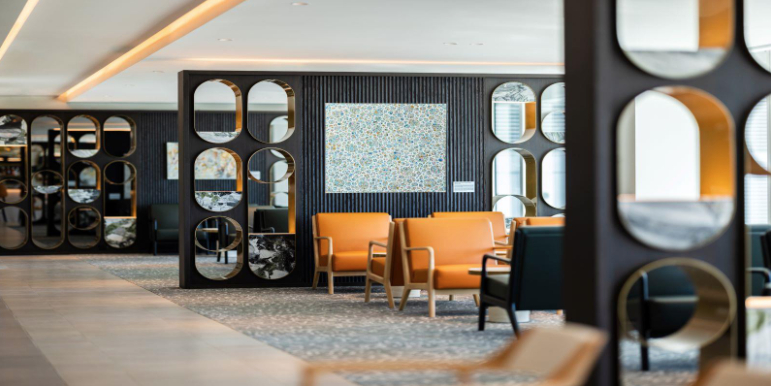 With sustainability in mind, single-use plastics have been eliminated, the lighting scheme is comprised of 100 per cent LED lighting, and the lounge is installed with energy-efficient appliances and water saving devices.