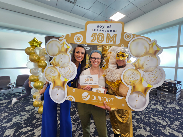 According to estimates and statistics, within the group of passengers on the flights waiting in the international pre-boarding hall A11, the lucky one was found. Since it is impossible to determine exactly who the 50 million passenger is (hundreds of passengers enter and leave the airport simultaneously), Quiport decided to celebrate with all the passengers in the holdroom and reward them
