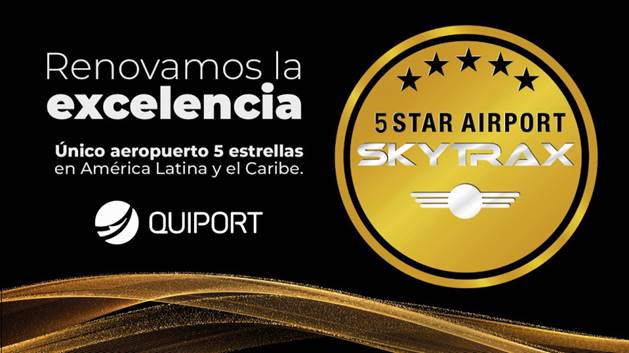 Quito International Airport received the renewal of 5-stars rating related to the quality service carried out by the international auditor Skytrax, specialized firm in international air transport. Quito airport achieved the 5-star category for the first time on May 11, 2020 and has the honor of being, to date, the only airport in Latin America and the Caribbean to have obtained the highest rating from Skytrax.