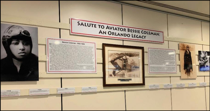 A visual history of daring aviatrix Bessie Coleman (1892-1926) is on display through February on the Third Level of the Main Terminal of Orlando International Airport, in honor of her accomplishments for Black History Month.