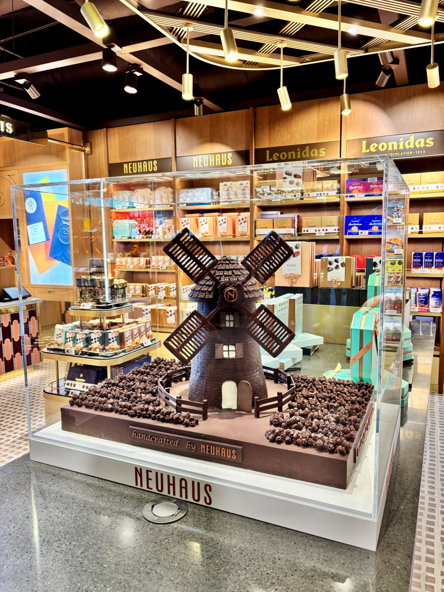 In addition to international brands such as Lindt, Leonidas, and Godiva, the store also shines a spotlight on Dutch chocolatiers, including Visser Chocolate, De Bonte Koe, and MADAQ. At a unique Pierre Hermé counter, from one of France’s most renowned pastry chefs, travelers can choose from a carefully curated selection of macarons and chocolates. This counter marks the first shop-in-shop of the famous pâtissier in the Netherlands. A handmade chocolate windmill forms the centerpiece of the store, offering a subtle tribute to traditional Dutch craftsmanship.
