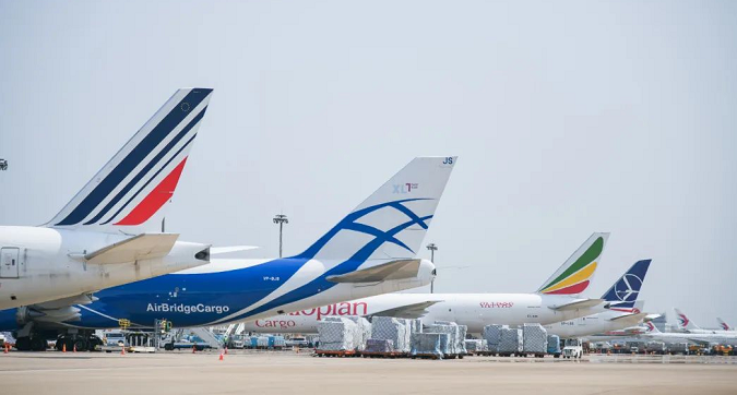The air cargoes wait for loading at an airport in Shanghai. [Photo/WeChat account: hongqiaoshangwuqu]