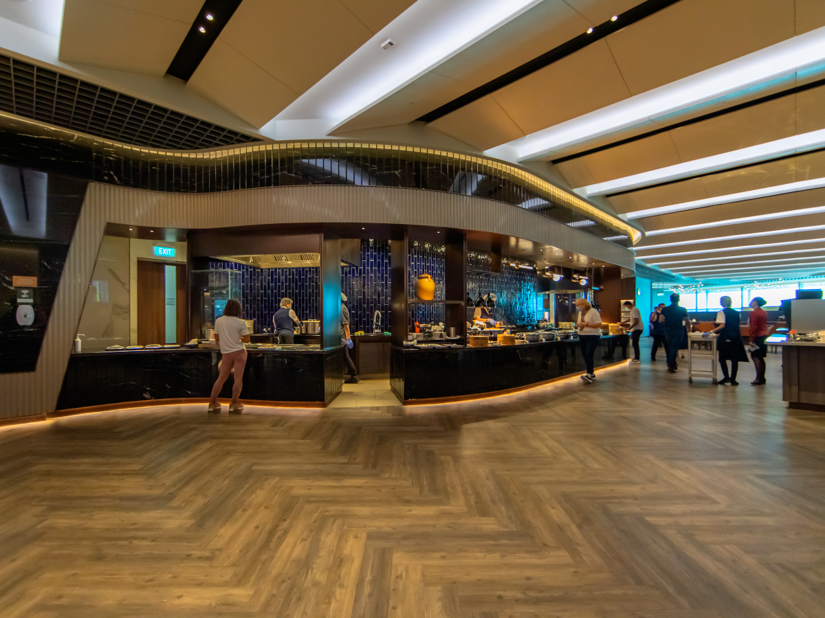 The Business Class section of the SilverKris Lounge is 20% larger, with Business Class customers and PPS Club members spoilt for choice with four distinct seating sections. These include a quiet rest area to catch some shut-eye, a main dining hall with an extensive self-service buffet, a living room area with sofa seats and productivity pods, as well as an open concept courtyard-style area that offers light bites for the traveller on-the-go. These choices give our customers the flexibility to work, dine, or rest in comfort, whether they are travelling alone or with companions and loved ones. A new full-service bar, with a barista in the morning and bartender service in the evening, allows customers to enjoy their favourite brew or tipple with a view of aircraft taking off and landing.