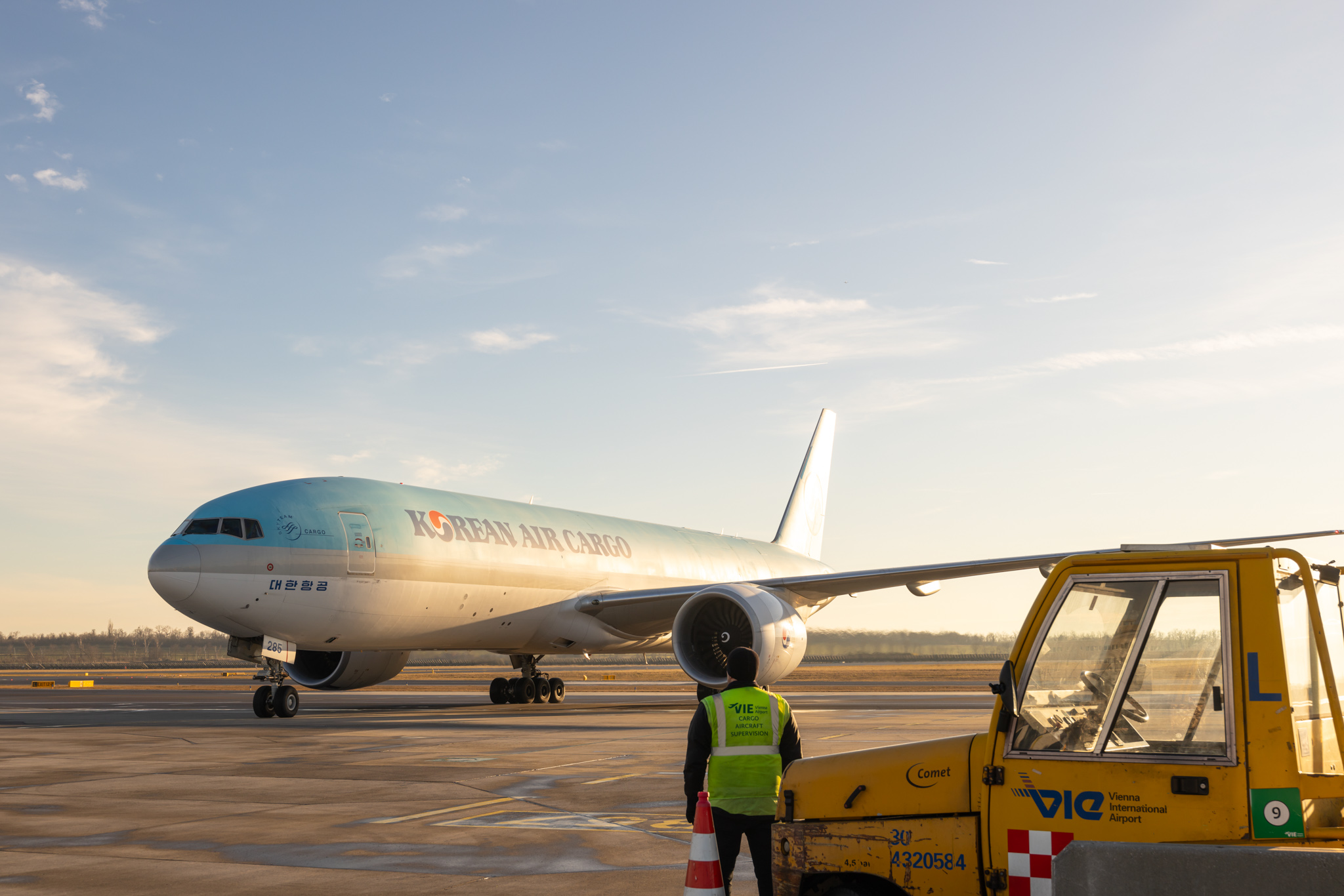 Korean Air Cargo is one of the world’s leading cargo airlines and currently connects Vienna Airport with up to ten flights per week to international economic centers. The Korean airline operates a fleet of Boeing 747-400Fs, Boeing 747-8Fs and Boeing 777Fs. For the airline, Vienna Airport is an important gateway for electronic and pharma goods from Asia.