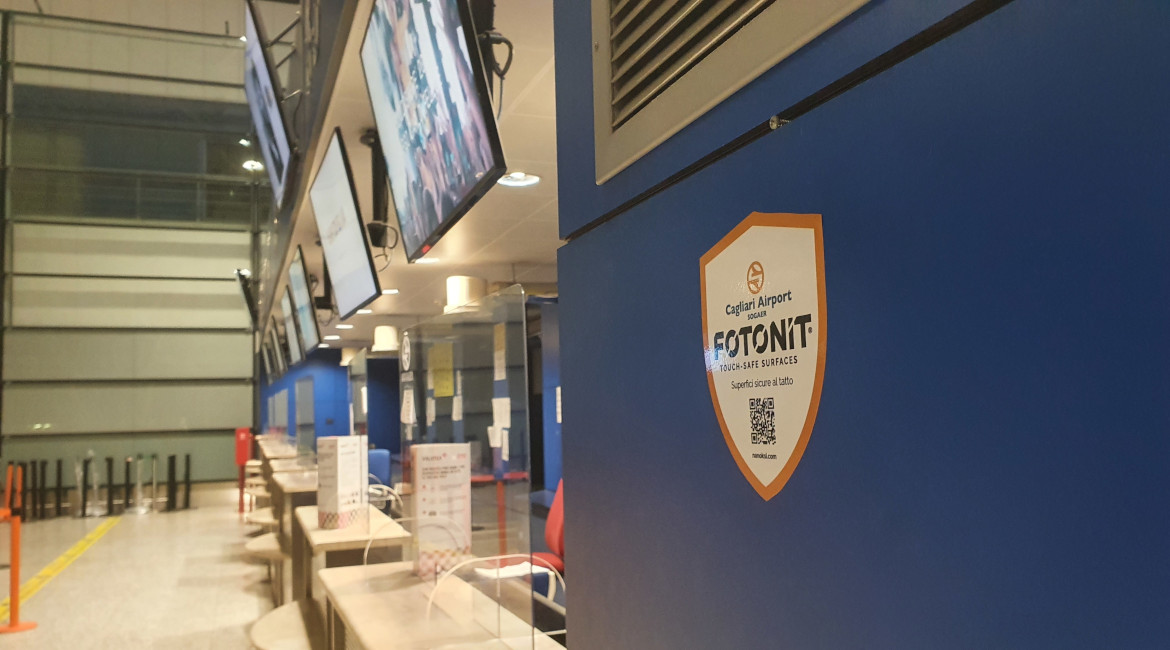 Cagliari Airport has chosen the sustainable chemical-free product Fotonit® by Nanoksi to ensure cleanliness on airport touch surfaces.