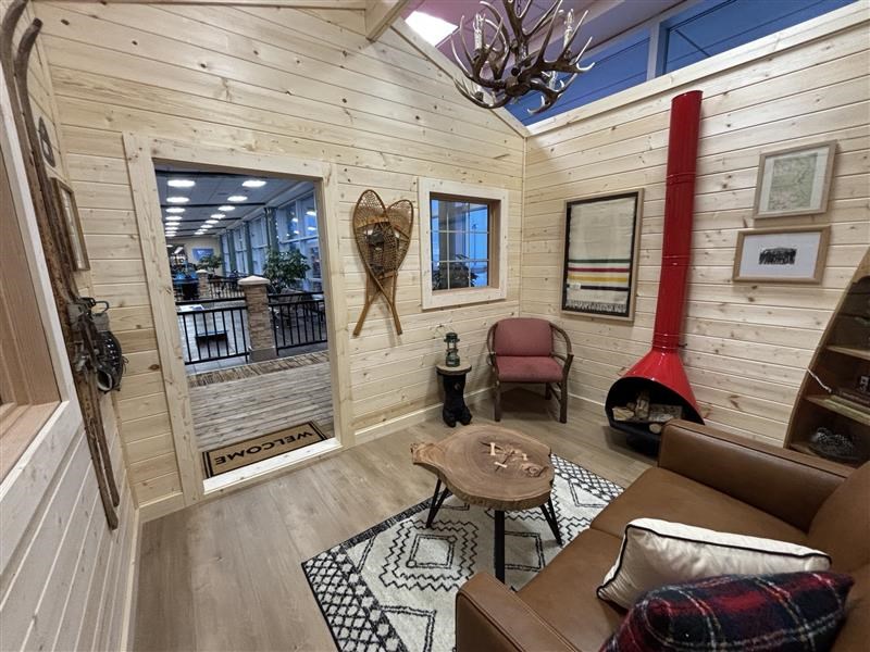 “We are honoured to have built the cabin for this installation with the quality and craftsmanship that Knotty Pine Cabins is known for,” said Alana Comartin, co-owner at Knotty Pine Cabins. “The cabin reflects Jasper’s warmth and character within the airport experience.”