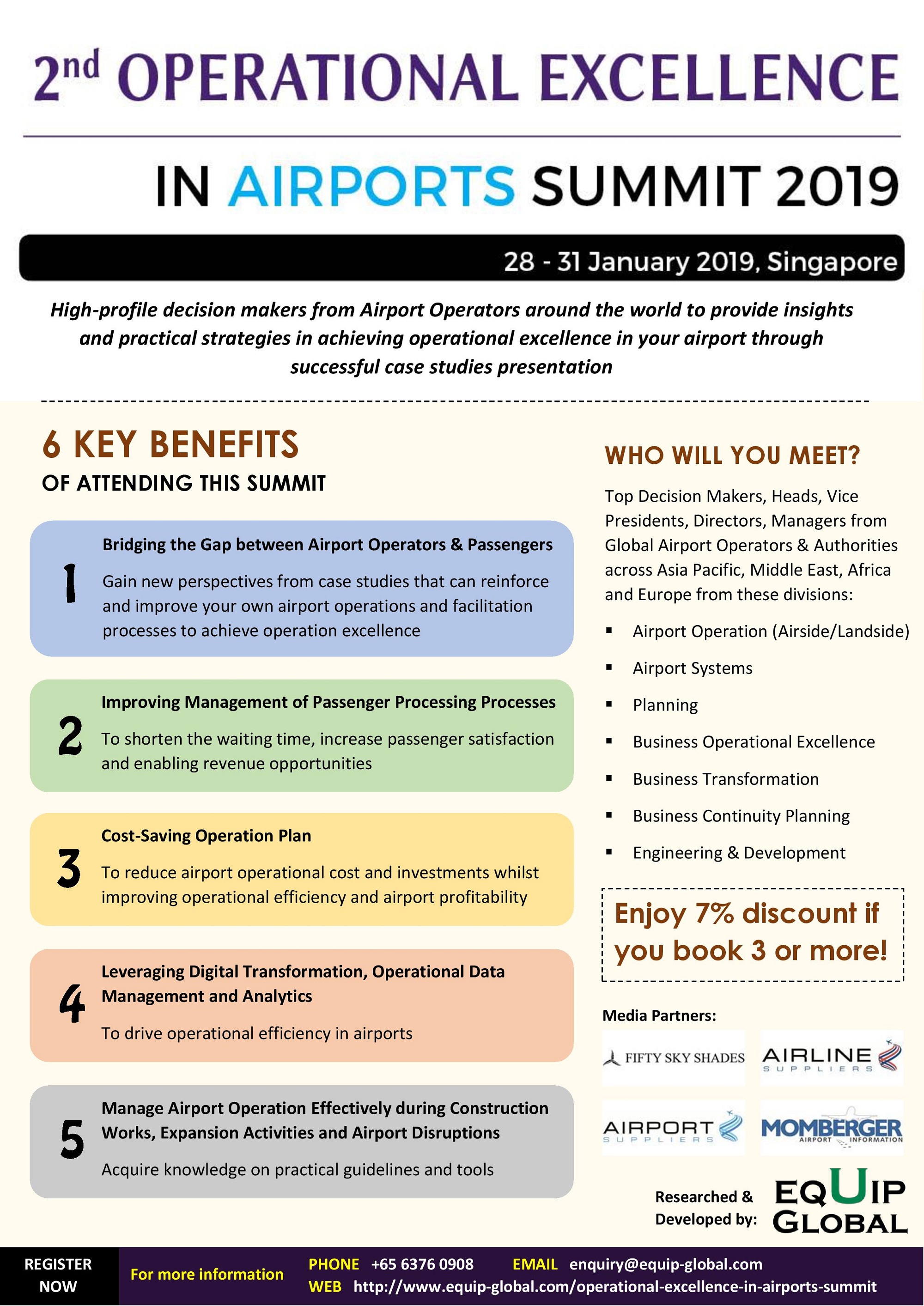 Equip Global’s 2nd Operational Excellence in Airports Summit has been tailored to bring together the high-profile Decision Makers from across the Operation (airside/landside), Airport Systems, Planning, Process Excellence and Business Transformation Departments around the world to provide a unique insight on how you can achieve operational excellence in your airport with cost-effective plans without compromising safety and security!