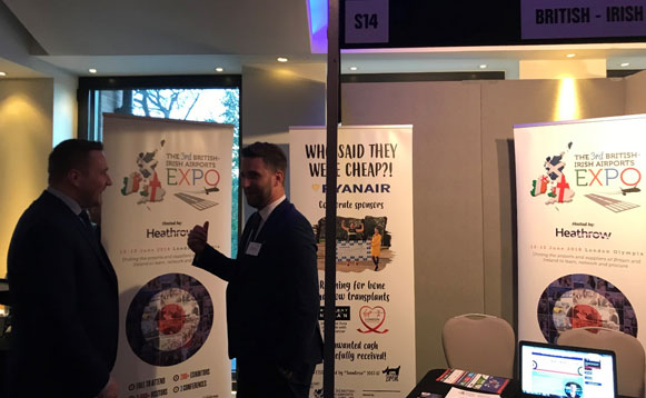 British-Irish Airports EXPO’s Ben Whibley with Matthew Sims, Business Developer at The Creative Engine “providing solutions for the digital retail sector.”