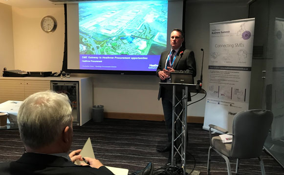 Chris Howe, Heathrow’s Buildings Procurement Director, addressed a packed business seminar on “The SME Gateway to Heathrow Procurement Opportunities.”
