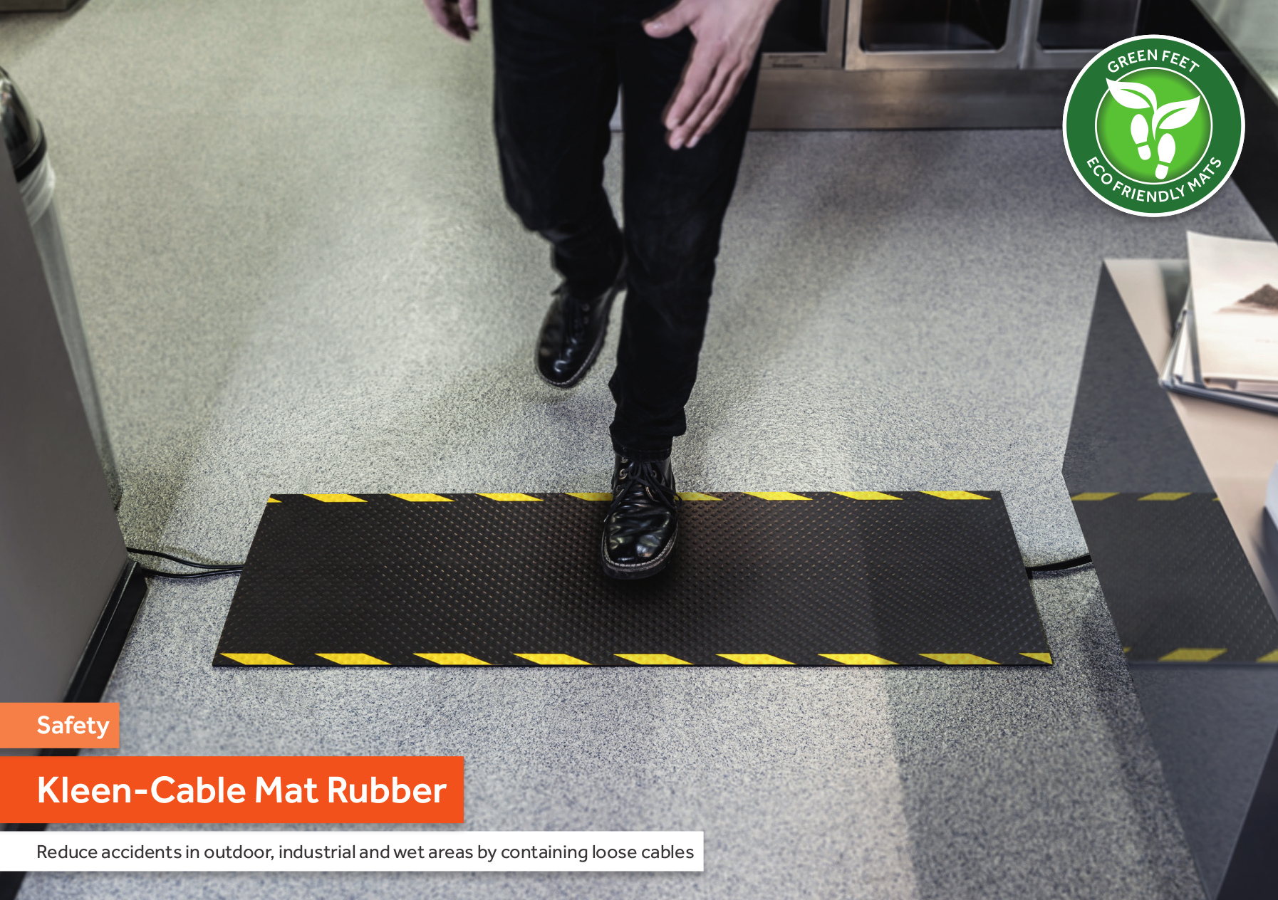 Loose cables and wires in offices, production areas, and industrial environments create a serious safety hazard. The Cable Mat Rubber has been specifically developed to reduce trips and falls by safely containing loose cables while highlighting potential tripping risks. Its high visibility borders provide a clear visual warning for staff and visitors, making it ideal for airports, hangars, railways, rail platforms, offices, and high-traffic areas.