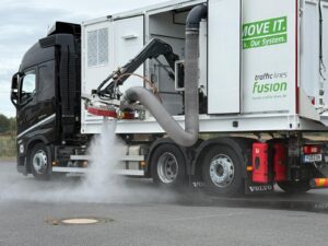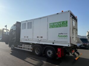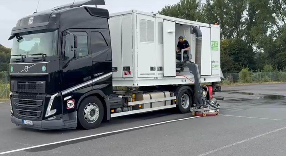 This new and innovative solution combines ultra-high-pressure water blasting technology, including fresh and wastewater management, in an easily shippable container. This compact solution is ideal for marking and rubber abrasion removal. With the adjustable working hood, it allows efficient operation from both sides. The container can be mounted on any chassis, offering maximum mobility and versatility. Based on the format of a 20-foot container, the system can be mounted on almost any carrier vehicle worldwide. The fusion is ready for immediate use, reliably powerful, flexible, can also be used as a stand-alone solution, and can be shipped worldwide without any problems. The fusion was developed specifically for international infrastructure conditions: