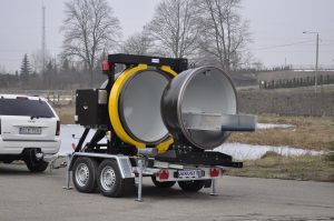 The container is mounted in two-axle trailer equipped with a height-adjustable drawbar and can be towed on public roads. The trailer has typical 7-pin connector – suitable for most electric installations.