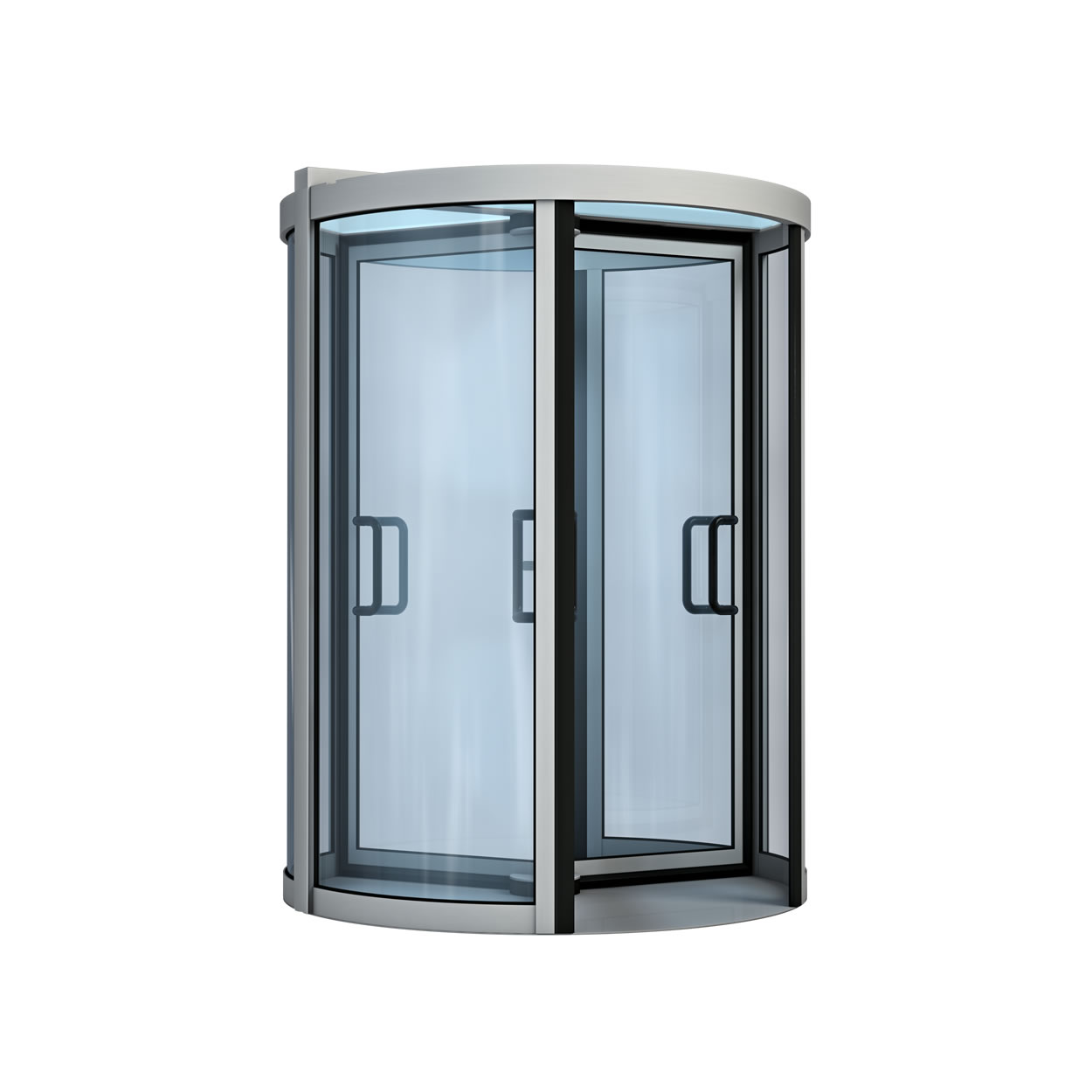 Geryon security revolving doors secure protected areas of a building against unauthorised entry and offer a variety of options for different levels of security. Scales or a separation sensor can also be used to monitor the interior of the unit for individual access. They can be controlled by a card reader, buttons, control desk or even by biometric identification systems. The wide and varied selection of optional extras includes reinforced bullet-proof and burglar resistant versions.