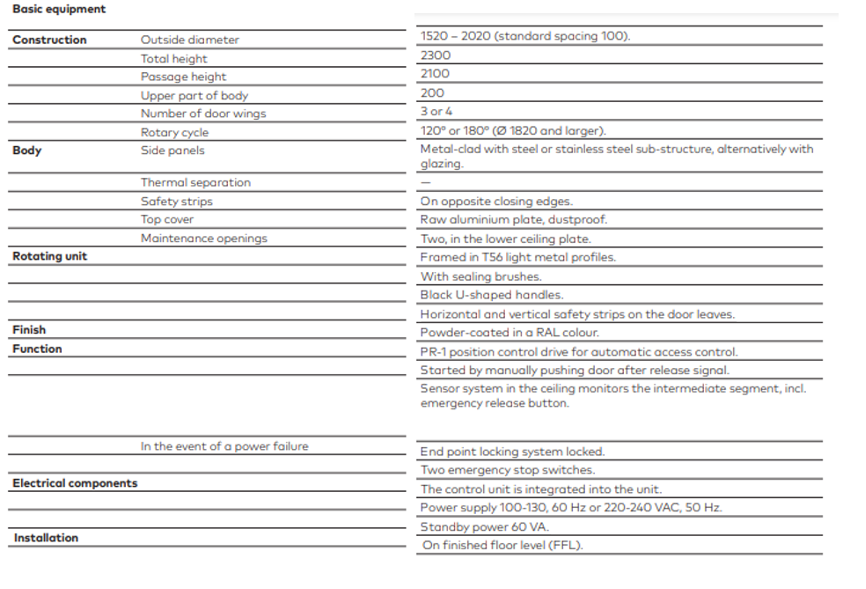 The Geryon SRD-S01 3- or 4-leaf Security Revolving Door is an all-glass unit and is optionally available with resistance class 2. It is particularly suitable for prestigious environments.
