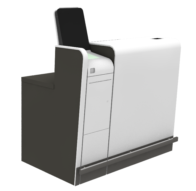 The HYBRID self service check-in is designed to be used as either a traditional or self service bag-drop (SSBD) counter. A check-in agent can switch the HYBRID counter between a traditional or self-service mode in an instant.