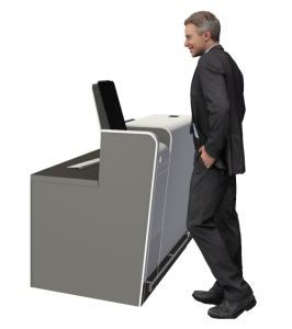 The HYBRID is ergonomically designed and has a flat frontal surface providing a passenger friendly solution. Durable materials and smart engineering makes the HYBRID a state-of-the-art counter solution where design is based on accessibility and service. The counter’s design supports its function and no extra terminal space is required for installation. The front panel of the HYBRID desk is made of a solid surface which is hard-wearing, highly resistant, antibacterial and requires minimum maintenance.