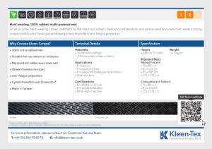 The KleenScrape Mat is a hard-wearing, 100% rubber, multi-purpose mat designed to meet the toughest demands in airport hangars, entrances, railway platforms, and other high-traffic areas. Built for heavy-duty, indoor and outdoor use, it combines exceptional durability with functional design, making it ideal for environments where safety, cleanliness, and resilience are essential.