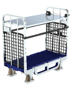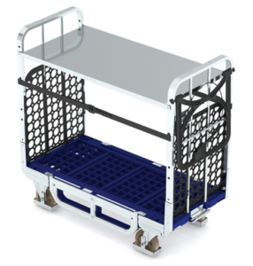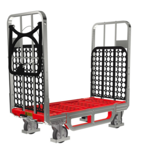 Equipped with a push/pull handle with hand brake, easy foot parking brake, and high-quality wheels with foot protection, it ensures safe and ergonomic operation. Retaining straps keep loads secure, while optional shelves and towable linkage add flexibility for bulk transport.