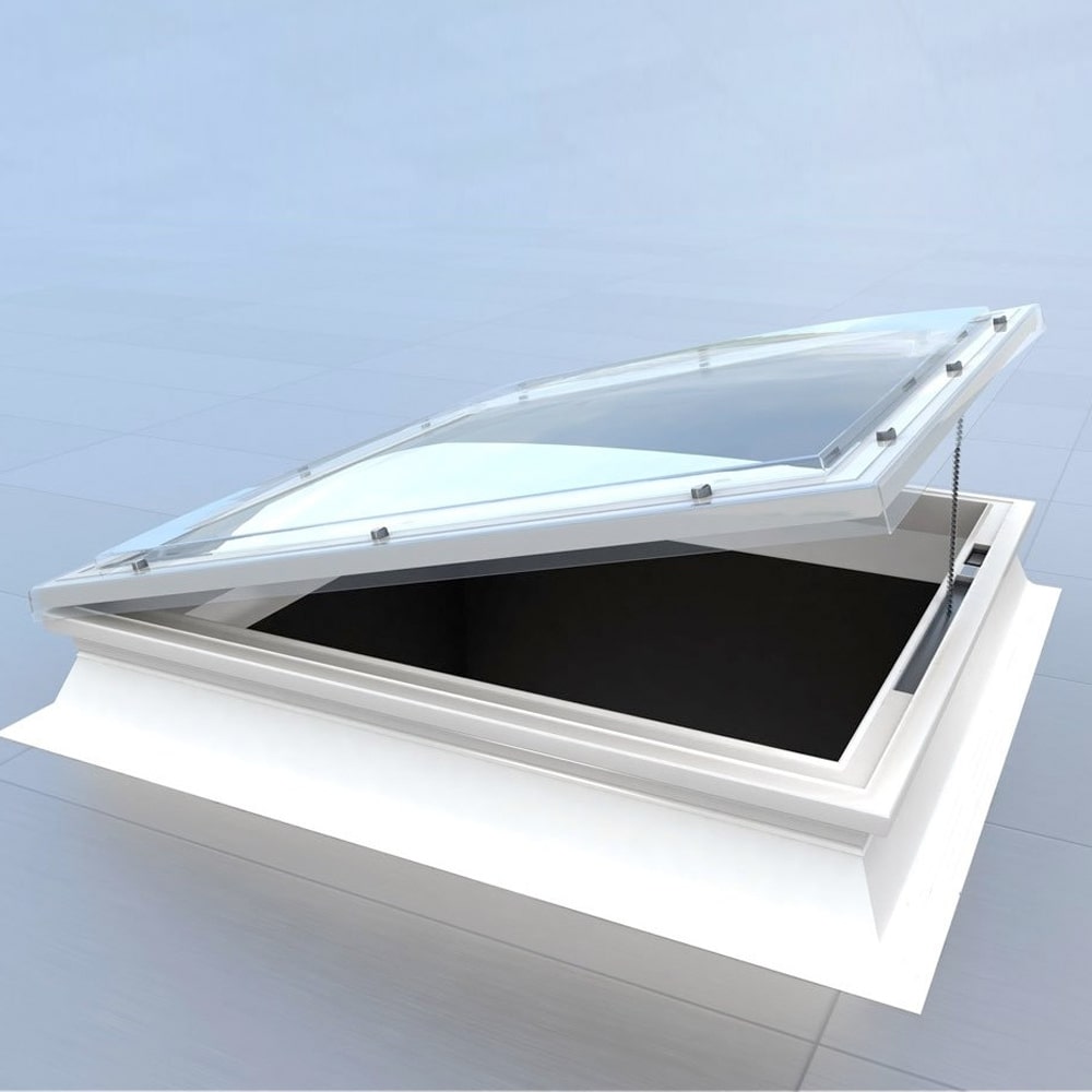 Brett Martin Mardome manual vent opening rooflight is the standard specification opening dome unit in the Mardome rooflights range complete with 150mm upstand/kerb as standard and opens up to approximately 300mm. Opening rooflights can provide rapid ventilation.
