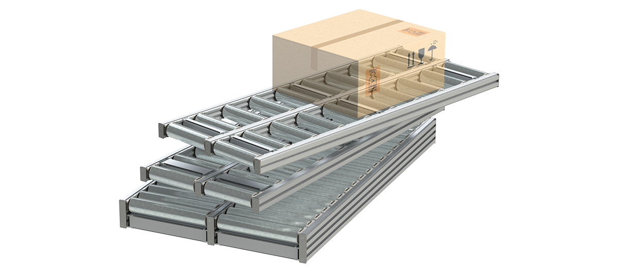 The RB4020/5025 double-track roller conveyor consists of two parallel tracks and enables stable transport even with higher loads or wider products. The RB4020 roller conveyor is equipped with a 20 mm support roller; the RB5025 roller conveyor has a 50 mm support roller. The distance between the two tracks can be set as needed, allowing the design to be optimally adapted to structural conditions and transport requirements. This roller conveyor is particularly useful for parallel goods flows or applications that require increased lateral stability. It can be integrated into new systems and existing conveyor lines.