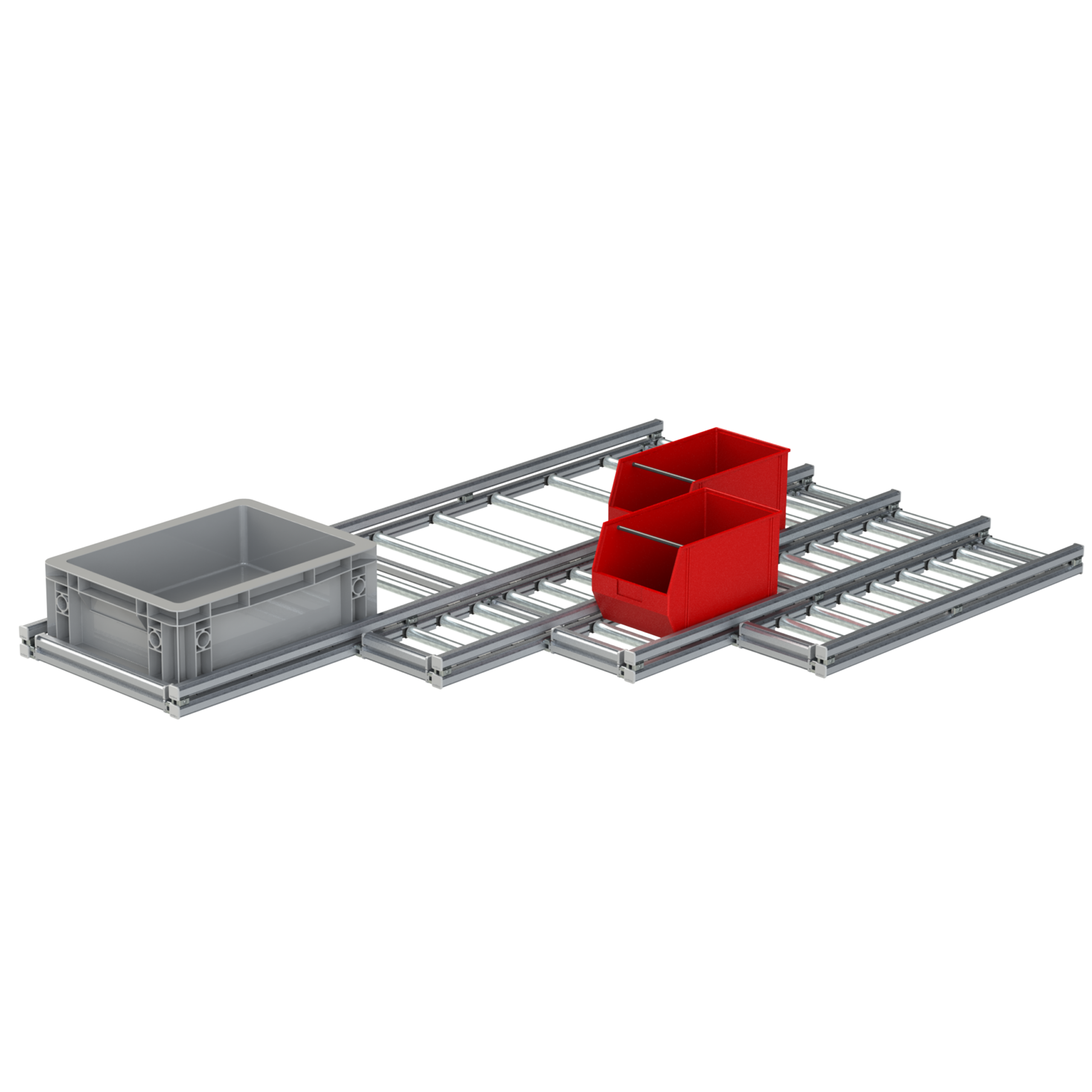 The RB4020/5025 multi-track roller conveyor consists of several parallel tracks that enable simultaneous transport of multiple products. The number and width of the tracks, as well as roller spacing, are determined individually, allowing the conveyor solution to be precisely adapted to different product formats and process sequences. It is particularly suitable for sorting areas, buffer zones, or material distributions with high throughput. Its precise design ensures an even, trouble-free transport flow – even for goods with a wide range of variants.