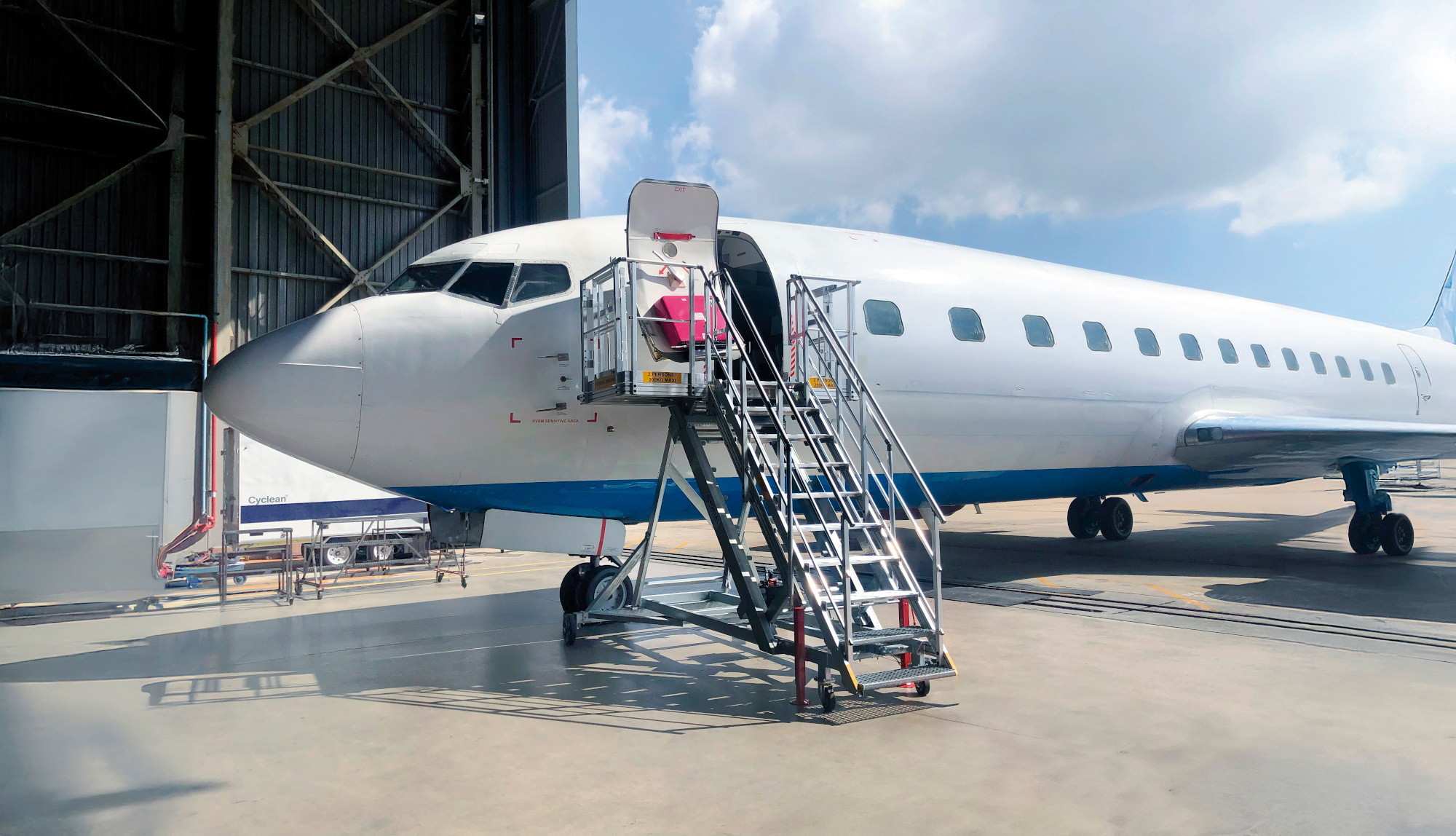 Designed for everyday aircraft maintenance operations, the FORTAL height-adjustable runway stepladder ensures safe and reliable access to aircraft and helicopters.