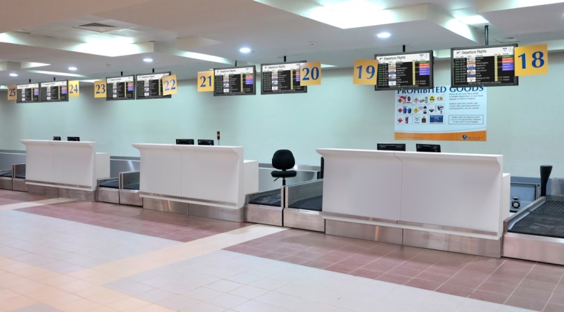The CURVED counter range developed by INTOS comprises an inviting vacuum-formed Solid Surface front panel, available in various colors and patterns. The combination of the Solid Surface front panel, compact laminate desk top, sides and printer cabinet, stainless steel plinth and foot rail makes the CURVED a solid, state of the art counter range. The CURVED counter range is available in different counter types for check-in, passport control/immigration, boarding gate, ticket sales, car rental, etc.. This ensures a consistent look & feel throughout the complete terminal.