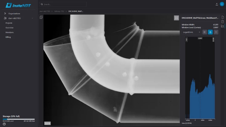 Access your images anywhere via web browser and adjust the view with the histogram tool. Image Copyright: DÜRR NDT GmbH & Co. KG