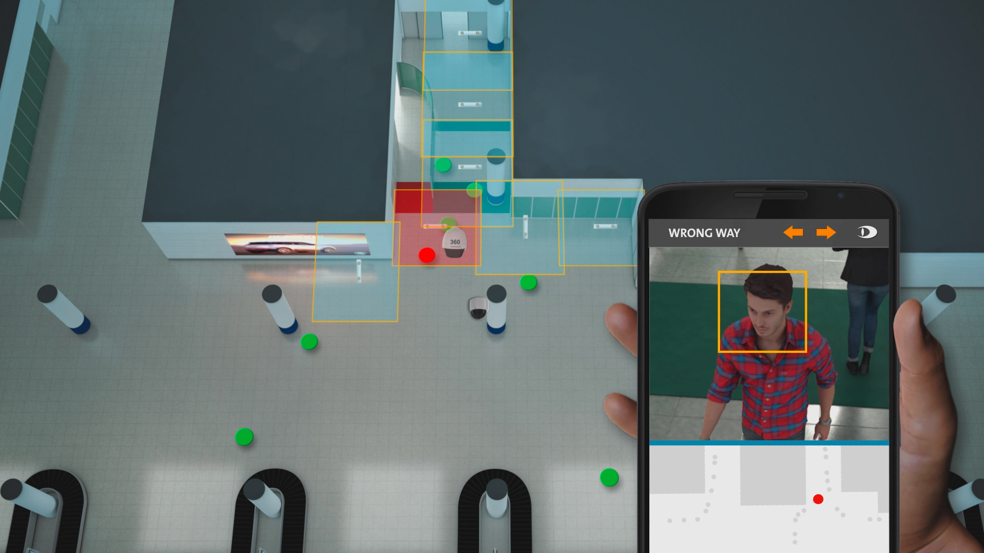 Dallmeier offers airport operators a diverse portfolio of video analytics applications. here: video-based tracking of so-called returnees in the airport security area.