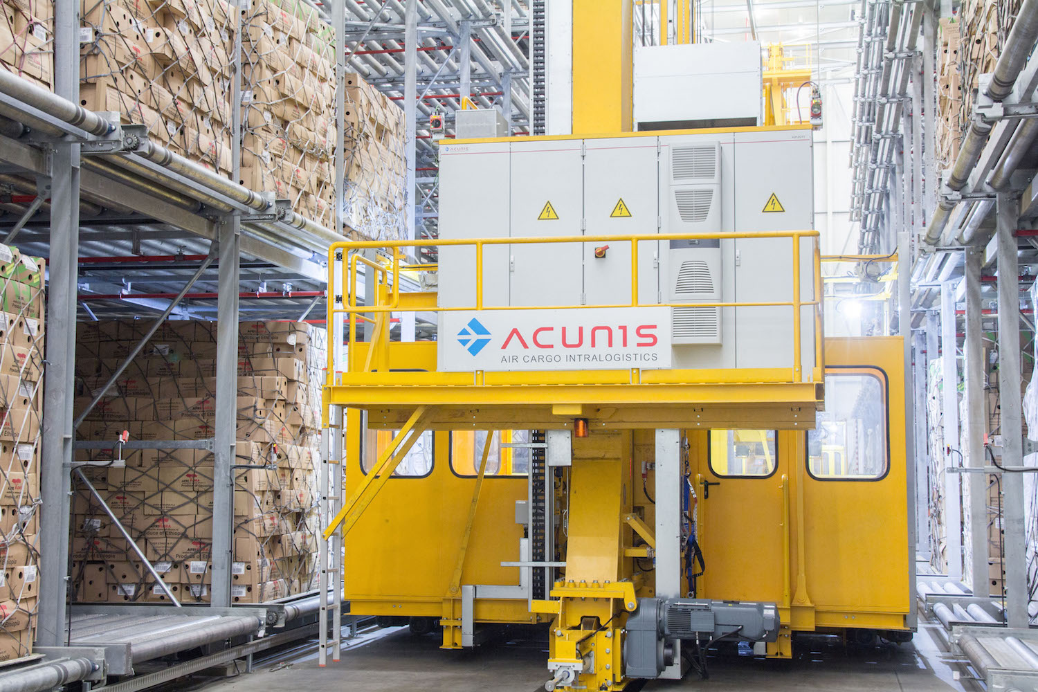 The Unit Load Devices (ULDs) weighing up to 6.8 t are stored and retrieved using four elevating transfer vehicles from AMOVA.
