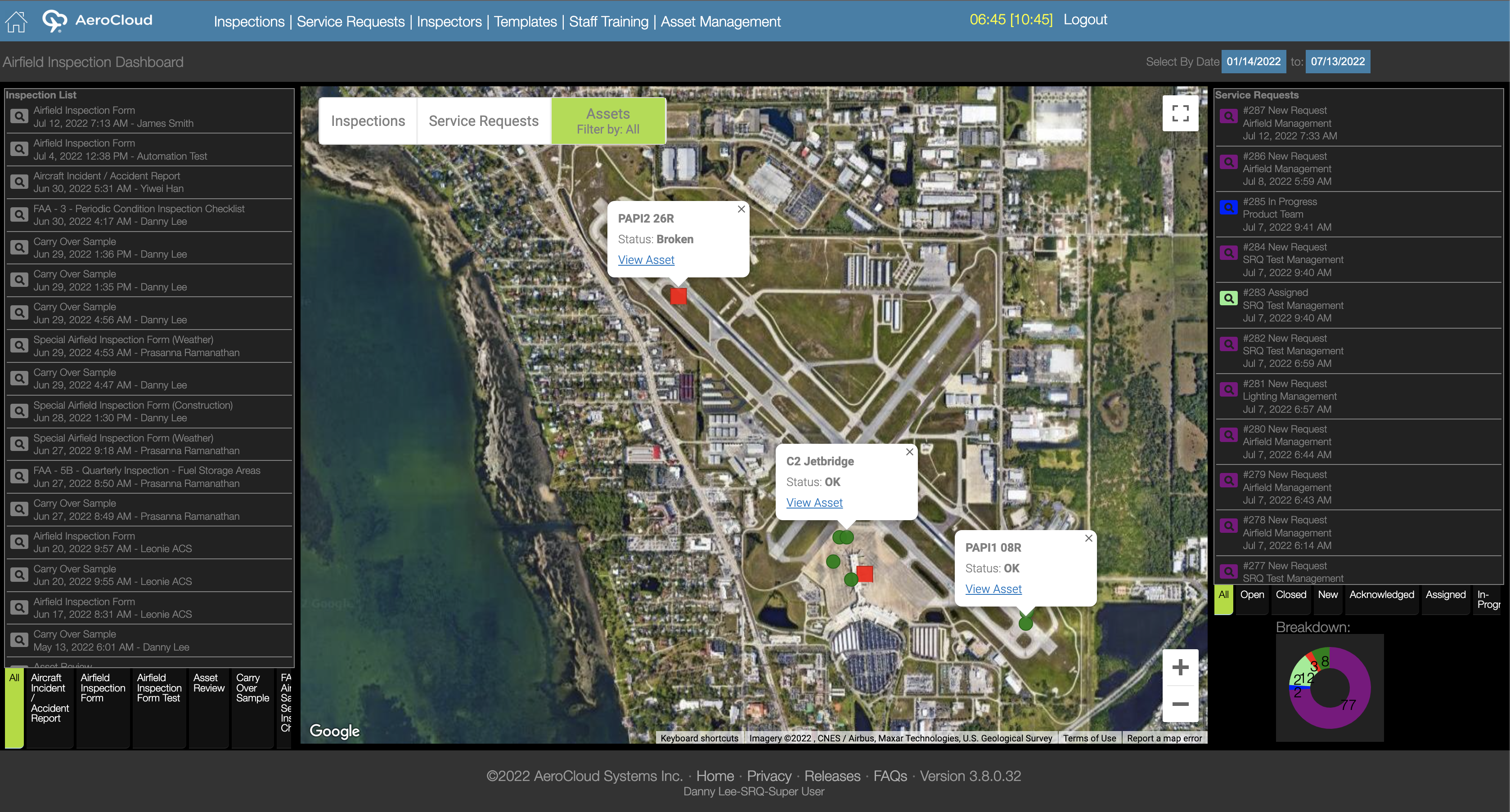 Asset Management is designed so it can be integrated into AeroCloud’s Inspection Management module which enables operators to keep track of all legal inspections and service requests. AeroCloud’s platform is available with unlimited user licenses and can be accessed on any device with 3G capability. Alternatively, airports can use the Asset Management module as a stand alone product.