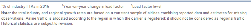 African carriers posted the largest year-on-year increase in demand of all regions in April 2017 with freight volumes growing 26%. Capacity increased by 17.7% over the same time. Demand has been boosted by very strong growth on the trade lanes to and from Asia which have increased by nearly 55% so far this year. The region’s load factor remains challenged–the lowest of all regions and well under half that of carriers based in Asia-Pacific.
