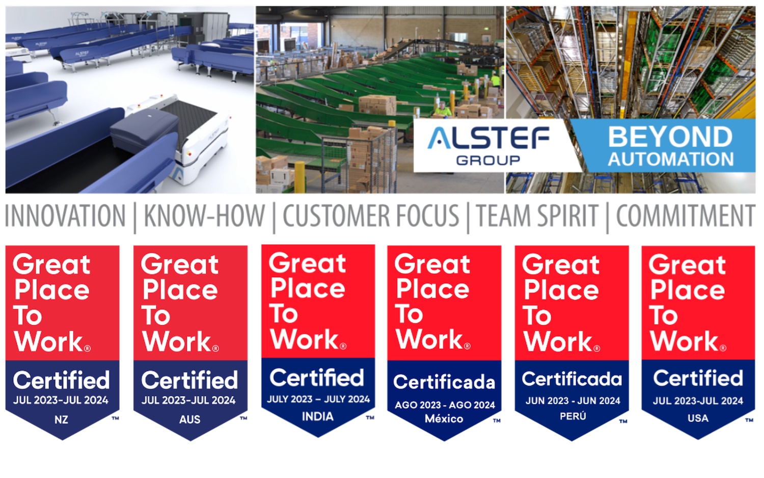 Alstef Group, leading provider of automated solutions for baggage handling, intralogistics, air-cargo and parcel handling solutions, is thrilled to announce that its offices in New Zealand, Australia, India, USA, Mexico, and Peru have been certified as Great Places to Work®. This prestigious recognition highlights Alstef Group’s commitment to fostering a positive and inclusive work culture across its global operations.