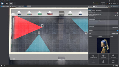 The smart integration with the Dallmeier HEMISPHERE® software links the RFID tag alarm messages to the relevant viewing angles of the cameras. If a RFID tag registers an incident the Dallmeier HEMISPHERE® software processes the alarm with the aid of the open message broker “Apache ActiveMQ”, and the user sees the camera location in question light up on a 2D or 3D map of his environment – in a colour defined according to the priority of the alarm. At the same time, all events are listed in the “Alarm Inbox” together with all associated information, such as the name and image of the work of art in question, to enable them to be assigned unmistakably. Users can verify the alarm with just one mouse click – for example by switching to the live feed or viewing a playback loop which begins five seconds before the alarm is triggered and ends five seconds thereafter. The alarm can also be forwarded to other users or comments can be added to it.