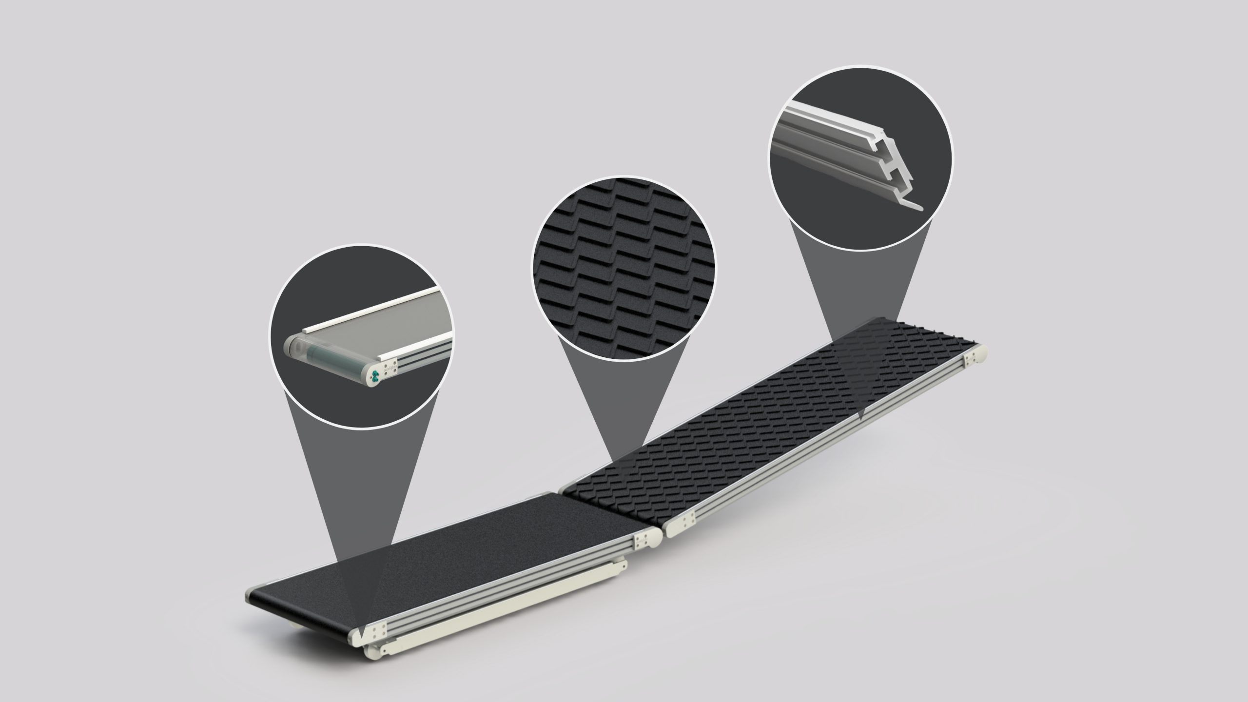 Montech is committed to optimizing its products and innovating constantly. The choice of materials plays a decisive role here. The materials used in Montech’s belt conveyors are extremely durable. The framing of the belt conveyors consists of an anodized aluminum profile that is extremely lightweight and corrosion resistant. These belts are available in anti-static and cut-proof versions, so they are perfectly suited to the specific requirements of airport operations.