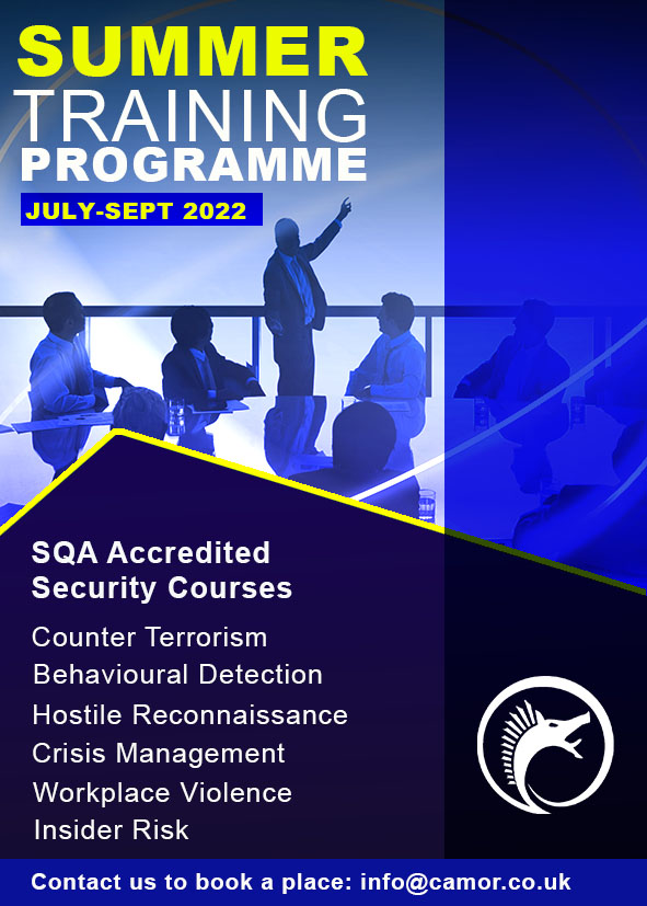 CAMOR are launching our ‘Security Summer Training Programme’ where we will be running a range of SQA accredited courses over the coming months at competitive prices. The courses will be hosted by leading experts in their fields and can be delivered online or face to face. It is the perfect opportunity to upskill your workforce, enhance security culture within your organisation whilst rewarding employees with an academic qualification on completion.