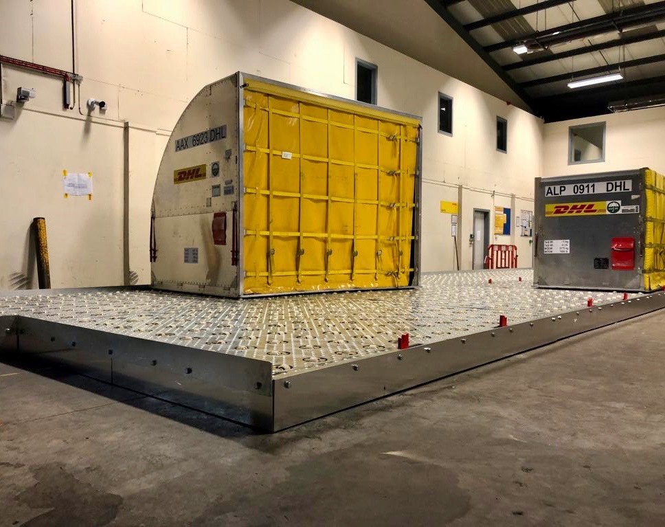 The equipment provided consisted of a Castor Bed deck measuring approximately 120q.m with capabilities of handling & weighing DHL ULD’s within the warehouse. In addition, Air Tech Innovations also provided a number of bespoke DHL Slave Pallets, designed & manufactured to specific DHL requirements.